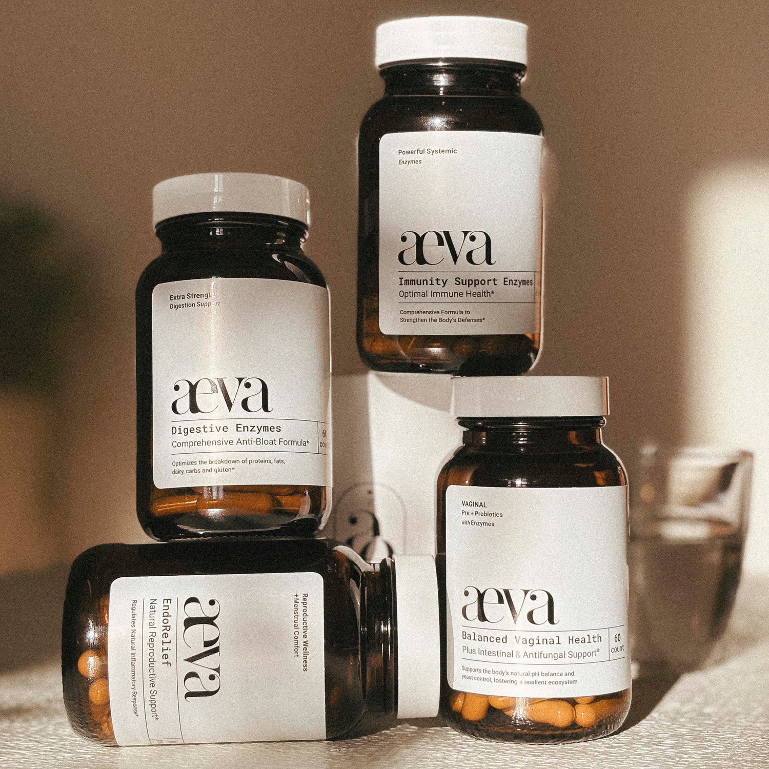 We started Aeva because we saw a gap—supplements that promise a lot but deliver little. Enzymes are the missing piece most brands overlook, and we built our entire line around them. Every formula is rooted in functional medicine, made in California, third-party tested, and packaged in reusable glass. It's thoughtful supplementation, designed to actually work.